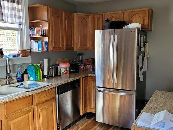 Three bedroom twin offers 1 full bath, living room, dining room and modern oak kitchen. Relax on the front porch or rear patio. Roof is 4 years young.