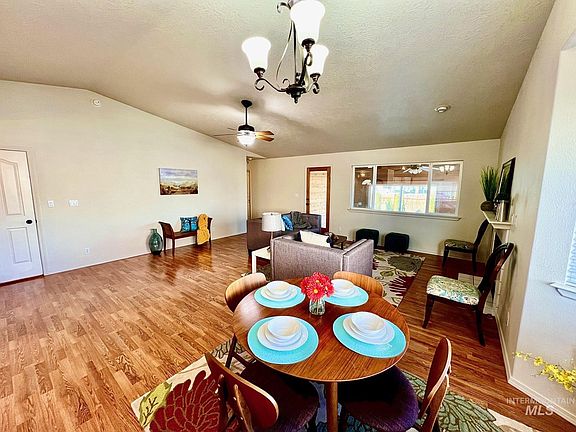 Awesome RV Parking! No HOA. Cute 1476 sq. ft. 3 bdrm, 2 bath, 2 Car, (w/shelving), single level w/lots of extras! Open/bright floorplan w/front kitchen. Laminate & Tile floors, no carpet here. Huge main bdrm w/2 closets and dual vanities in the private bath. Large Great Rm w/Cozy Gas FP. Laundry rm w/sink. Super cute Cedar Lined enclosed Patio (is plumbed for a Hot Tub) can be used for whatever space fits your lifestyle. Backyard has nice covered patio, the Hollywood Junipers & Arborvitaes will grow along back fence for a scenic green screen. Large RV Parking area for all your toys! Larger corner lot on quiet cul-de-sac w/no rear neighbors. Great location close to The Village, Downtown Meridian & close to lots of shopping & Freeway Access. Settlers Park is a stones throw away. Here is what HAS been done, so you don't have to!...Newer 50 year Roof. Last 3 years: Kitchen quartz countertops, SS Fridge, D/W, H2O Heater, Interior/Ext. Paint & some Updated Plumbing. With your personalization, she'll shine bright!!