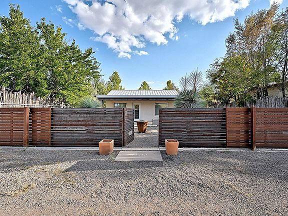 112 E. Galveston is located just blocks from Downtown Marfa and has the perk of C-1 Neighborhood Commercial Zoning, which allows for single family, multifamily, and a variety of commercial or mixed use opportunities. The 1928 gem-box adobe home was rebuilt in 2015 and a 2-story studio casita with 2 car garage added in 2018. This high-design property features custom cabinetry, concrete countertops, high ceilings, double-paned windows, tankless water heaters, and smooth plaster walls. The professionally designed landscaping provides multiple outdoor living spaces enclosed by steel gates and privacy fencing. Furnishing negotiable.
