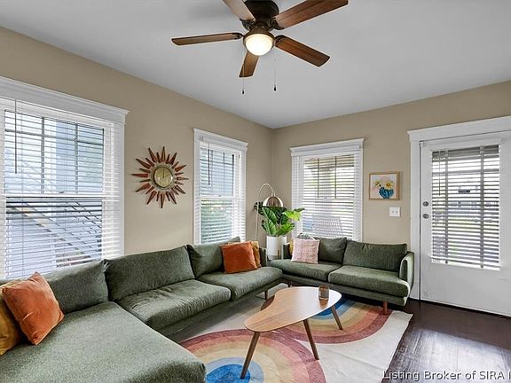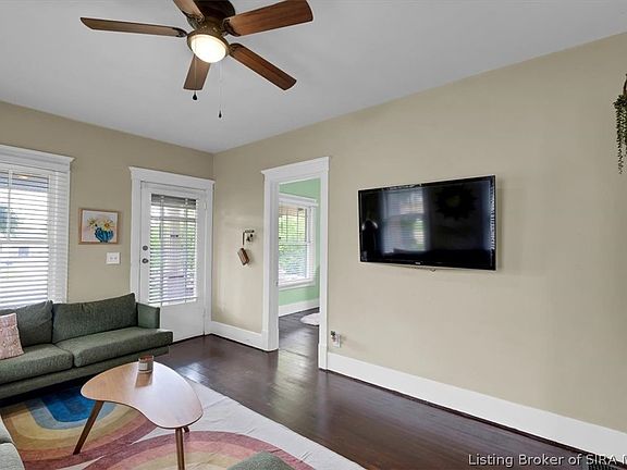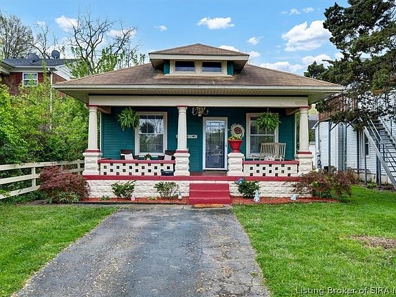 Overflowing with an abundance of charm and elegance, this warm and inviting ranch home is a must see! The first thing that will catch your eye is the distinctly beautiful covered front porch, perfect for your morning coffee or just some front porch sittin’. Inside the home you will find a spacious living room and dining room with an open concept and an abundance of natural light. The entire main floor features original hardwood floors throughout (No Carpet). The deceptively large eat-in-kitchen boasts freshly painted cabinets with plenty of cabinet space and matching white kitchen appliances that WILL REMAIN! Enjoy the convenience of the first-floor laundry room and the bonus room in the finished basement. This well-maintained home includes a new HVAC system (AC & Furnace installed in 2022), updated ceiling fans, light fixtures, and fresh paint throughout much of the home. The exterior features a private fully fenced-in backyard perfect for your furry friends, as well as a freshly painted deck, and concrete patio area, that’s perfect for entertaining! Conveniently located in a quiet & friendly neighborhood near tons of shopping, restaurants, and parks! It's extremely accessible to so many great things that Louisville and Southern Indiana have to offer. You’ll be minutes from downtown Louisville (NULU, YUM Center, Museums), Jeffersonville (Big 4 Walking Bridge, Riverstage), and great parks like the Falls of the Ohio Park and the River Walk Park. Schedule a private tour today!