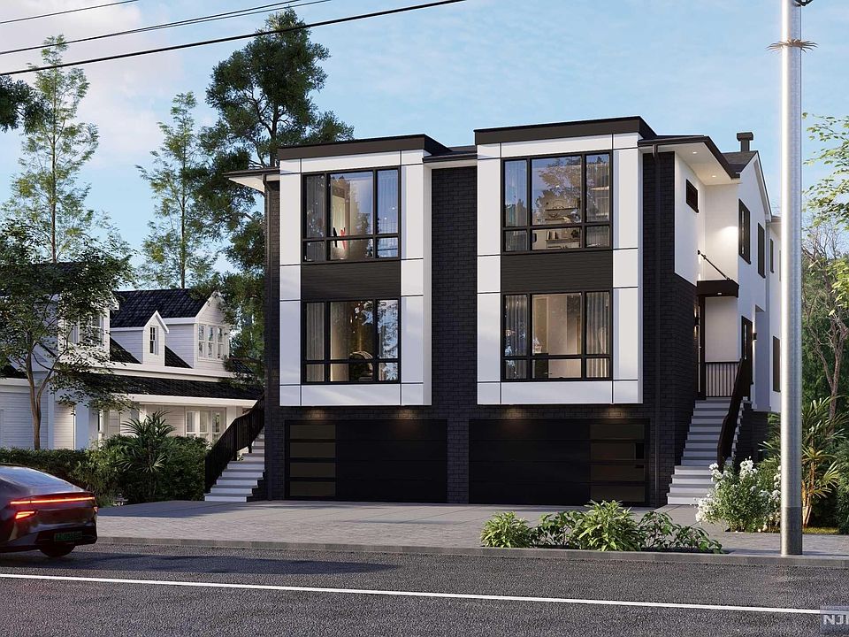 April 2024 Completion! Oversized duplex in ultra-desirable Palisades Park. 112 E Harwood Terrace A & B is a gorgeous BRAND NEW build. Beautiful NYC views from top floor bedrooms & main level deck. Each side features 4 beds, 3 full baths, 1 half bath, a 2 car garage both w. a large driveway for 2 cars. Quality craftsmanship is evident throughout. Main level features a large LR, DR, Chef's Kitchen, 1/2 bath & family room w. sliding glass doors that lead to a large backyard w. privacy fencing between each unit. Glass railings provide an ultra modern feel. The gourmet kitchen boasts quartz countertops, custom cabinetry, oversized waterfall island, SS appliances & wine fridge. 3 bedrooms, 2 full bathrooms, & laundry on the 2nd level (Washer & Dryer included). Primary bedroom suite features double WIC's & a spa-like bathroom with floating vanities, a soaking tub & oversized shower. Lower level features 4th bedroom + full bath, Rec room , Storage & Mechanical room with 13 ft ceilings!