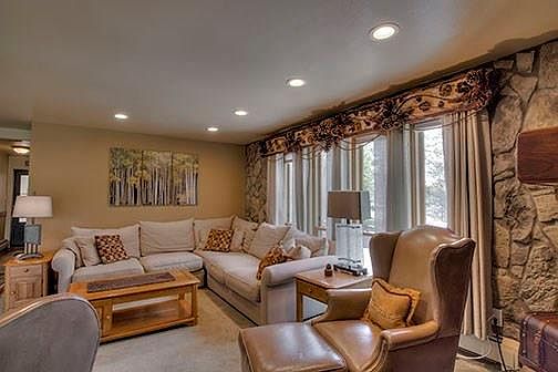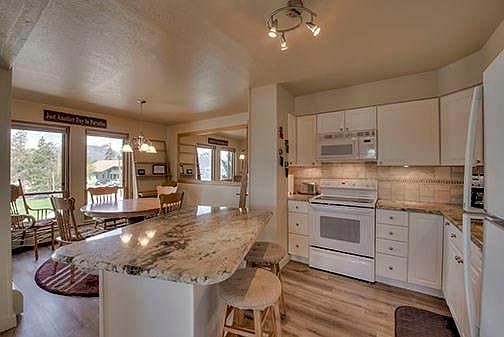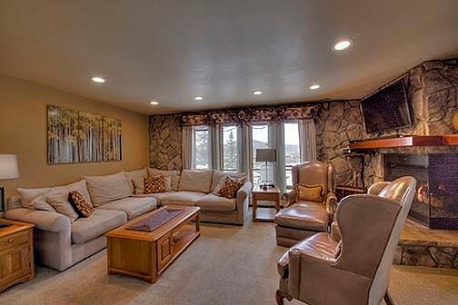 Panoramic lake views from this end unit condo with extra windows and great natural light.Incredible 2 bedroom (1 king, 1 queen), 2 bath (updated) condo in the heart of Dillon with a private deck overlooking the Dillon Amphitheater. Great room with gas fireplace, big screen TV, and luxurious sectional.Granite kitchen with open dining area.Steam shower, washer dryer, gas grill, ski locker and storage. Complex features clubhouse with pool, 2 new hot tubs and picnic area. Easy walk to bus stop.