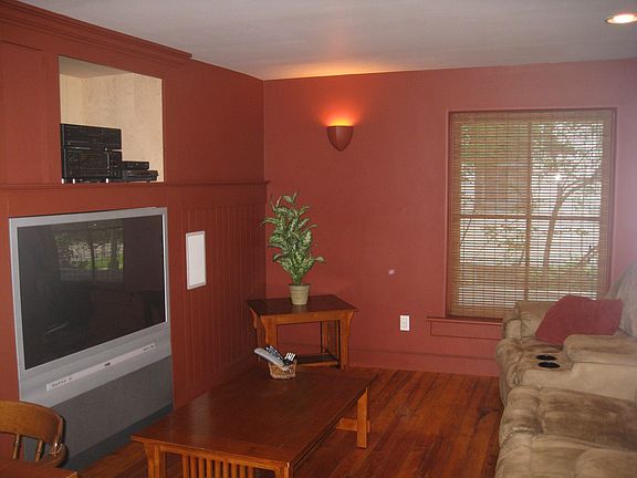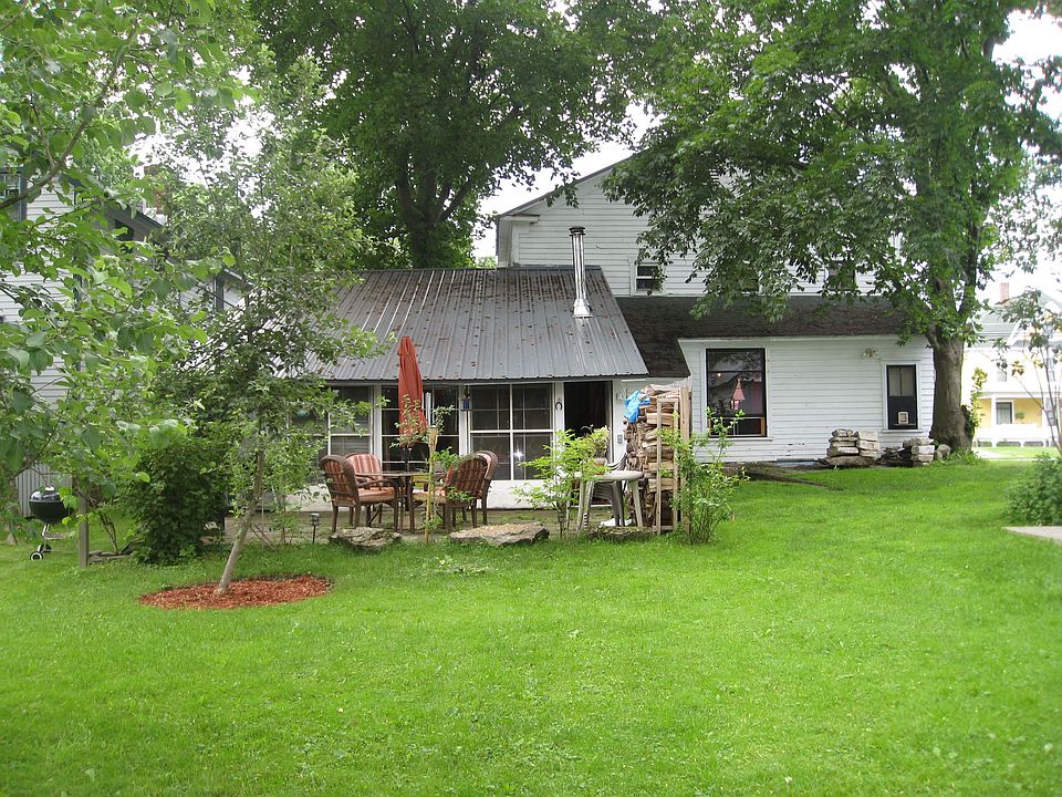 Beautiful New kitchen with center island and stainless steel appliances with Hardwood floors. There is a sliding bookcase that gives access to the apartment for more living space and a circular door to save space in the 1st floor bath. Master bedroom with bath is spacious and bright. Back yard borders the village park with a stone patio and a large front porch. Home is currently a hugely successful Dreams Park Rental, sellers live in apartment during the summer while rented.