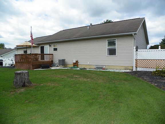 3 bedroom, 3 bath ranch with a full basement and a 2 car attached garage on a cul de sac street. House features laminate, vinyl floor and carpeting. Master bedroom has a attached full bathroom and a walk in closet. Kitchen has Oak cabinets and a walkout to the deck. Exterior features include a concrete driveway, Vinyl fence around the back yard, deck and a utility shed.
