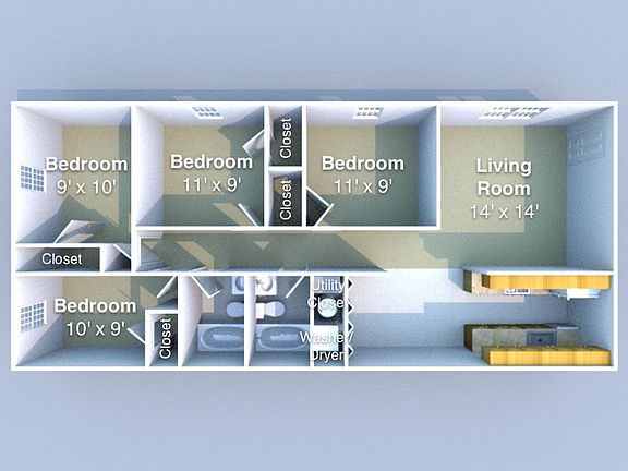Ardent Woods - Layout 4B - Ardent Woods is so spacious and so close to campus! Just a block down from Chauncey and within walking distance to everything, Ardent Woods is one of those rare places that manages to not sacrifice space for a great location. 3-Bed and 4-Bed flats and townhouses include Washer/Dryers in every unit with all kitchen appliances as well. Plus, you only pay electricity!