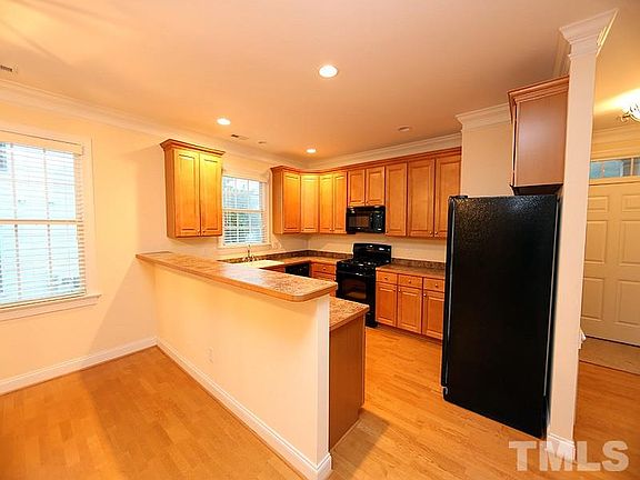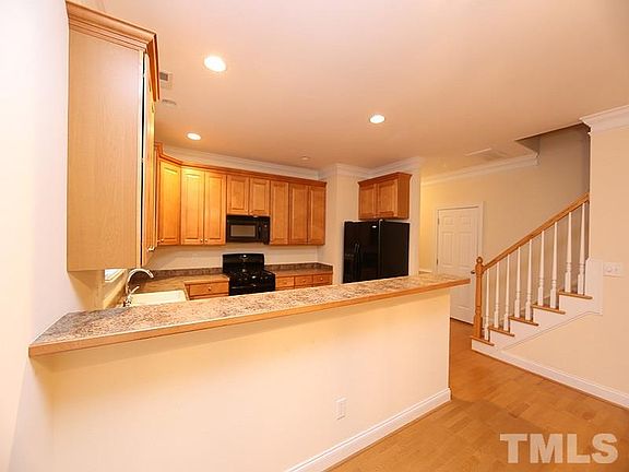 End unit townhouse w/ perpetual woods behind. Hardwood flooring in entry, kitchen, dining room and living room. Abundant light inside. Custom blinds through out. 42' maple cabinets in kitchen with black appliances and gracious counter space. First floor master with large wic and spa. Upstairs three additional bedroom w/ bonus space-hobby room, sewing room, storage plus walk in attic. Secluded and private patio-screened by woods and landscape. Quiet, low traffic street. Minutes to shopping, Duke and Hwys.