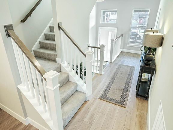 With over 2,100 square feet, a 2-car rear load garage, and an open floor plan, this townhome design offers a modern design with perfect gathering spaces.. The owner's suite enjoys plenty of natural light with triple windows toward the front of the home, while the foyer and entrance hallway leads to the open living spaces of the first floor. The living room, kitchen, and dining area share an open plan design, with sliding door access to an optional covered patio. The second floor includes 2 bedrooms, a bathroom, and a loft for flexible living space options. (Pricing may reflect limited time savings/incentives. See Community Sales Manager for details.)