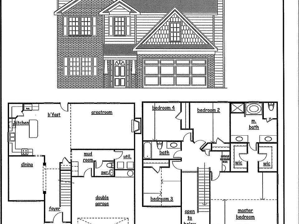 Dogwood Floor Plan- 4 bedroom/ 2.5 baths/ open floor plan/ Kitchen has stainless steel appliances and granite counters/ travertine backsplash/ walk in pantry/ Dining room with coffer ceiling/ family room with fireplace/ mud room area/ huge master bedroom with sitting area and his and her closets/ dual vanities and tile shower/ soaking tub/ Covered ''Game Day'' patio with fireplace and prewired for TV/ Great home with nice touches and upgrades.**Photos included to show similar finishes and are not indicative of all plans.