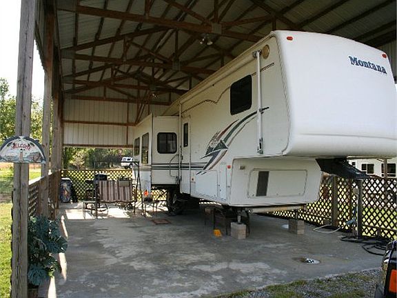 Wonderful Water view lot and RV located in Fisherdale Resort on the banks of the beautiful TN River/Kentucky Lake! Are you ready to get away- This might be just what you have been searching for! This is a very nice 2001 Montana RV made by Keystone has 3 slides and is 33 ft long. It has a nice queen bed in separate bedroom, a sleeper couch and comes with stove, refrigerator and microwave. The roof air is approximately 2 years old and the place comes completely furnished... down to the dishes in the cabinets! It sets on a 40x22 concrete slab and is covered by a 40x24x14 Metal Pole Barn. It has a 200 Amp Electric Pole with 50 watt service and there is a septic tank on property. There is also another complete RV hookup on the property. Its ready to go .. Just have your friends or family plug in and hook up and you are ready to begin enjoying! Located in the very nice FisherDale resort community which sets on the banks of the beautiful TN River... Fisherdale has many attractions to offer... The very nice Mermaid Restaurant and Marina, which is a floating barge setting on the water.. Complete with excellent food and even a spouting Mermaid! The marina offer gas and the small store offers a variety of water and sporting merchandise and a small sub shop as well. Everything you need at your finger tips, no driving a long distance to get the essentials! Enjoy a little weekend entertainment- The famous Tea Room Restaurant and Fisherdale Dock is also located within walking distance! The "Fisherdale Dock " offers Live Saturday seasonal entertainment and lots of weekend activities as well as a nice restaurant & marina with gas and a small store for those forgotten items. The "Dock that Rocks" as it is known to be called also offers extra activities on all major holidays such as Memorial Day, Labor Day etc.. No time to be bored in this resort.... As an added bonus you can also enjoy the beautiful 18 hole TN River Golf Course located directly behind this RV & Lot! To many activities and too much to offer in this beautiful Resort community on the banks of the gorgeous TN River/Kentucky Lake! Start your dream today! Contact Michael Mays @: 731-967-7412/ 731-845-4329 or 7lakes@bellsouth.net