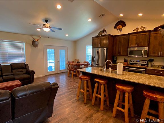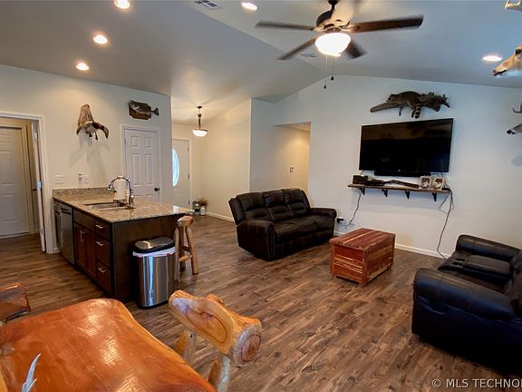 Just in time to get moved in before school!! Ehat an adorable home! This home is perfect for your family or if your downsizing to a small town its a great quiet community, just a block from school, and within 10 minutes Of Grand Lake & Lake Hudson. Spacious garage, fenced back yard and open floor lan and living area. The home has a great pantry, large closets and roomy bedrooms! Storage shed in the back yard!