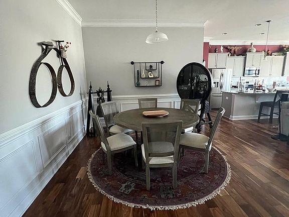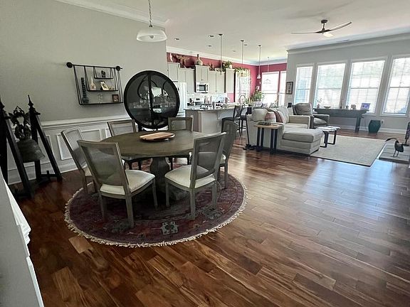 Absolutely beautiful ranch home in the popular Meadows at Coddle Creek community. This 3 bedroom, 2 bath ranch home features new acacia engineered hardwood floors throughout the entry, kitchen, living and dining areas, crown molding, wainscoting molding in the foyer, open floor plan and a formal dining room. The kitchen boasts a massive 9-foot granite island, pantry, and stainless-steel appliances. Primary suite featuring tray ceiling, upgraded tile shower, linen closet, walk-in closet, and double vanity. Additional upgrades include a garage attic ladder, laundry sink with additional cabinets, extended cement patio, custom closet organizers in the primary closet, 2nd bedroom, laundry room closet, and the kitchen pantry. Enjoy all the neighborhood has to offer including a community, pool, playground, walking trail and a bocce ball court.