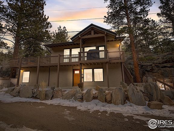 Discover this exceptional property in the sought-after Evergreen Point community, just a stone's throw away from vibrant Estes Park! This captivating mountain-view residence spans nearly 2,000 finished square feet and is ideally positioned opposite the river. It features three well-appointed bedrooms and three modern bathrooms, ensuring comfort throughout the seasons. Experience culinary delight in the sizeable eat-in kitchen adorned with elegant granite countertops, which leads into a cozy family room with a pellet stove for those brisk winter nights. The home is equipped with comprehensive heating systems, including forced air heating on both levels and dedicated electric heating in the master suite for personalized comfort. Health-conscious residents will appreciate the radon mitigation system and newly installed septic system, ensuring a safe and healthy living environment. Don't miss this incredible opportunity to live in proximity to the charm and amenities of Estes Park!