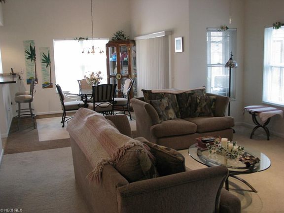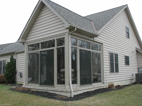 One owner detached single-family condo. Low-maintenance exterior. Neutral decor throughout. Kitchen has raised breakfast bar. Dining rm. has view of 44.9 acre Lorain County Metro Parks thru sliding door leading to Nature Stone 3-season room. Master Suite has vaulted ceiling, walk-in closet and private garden tub/shower area. 2nd bedroom is located next to full bath with tub/shower. Loft area overlooks dining/living area. 3rd bedroom/bonus room is located off loft. Living room has gas fireplace and vaulted ceiling. Security system. Covered front entry. Ceramic tile foyer with vaulted ceiling. Professional landscaping. Garage super insulated and has gas head w/heat pump. Minutes from both I-80 and I-90. Do not let cat out. Please remove shoes. Thank you.