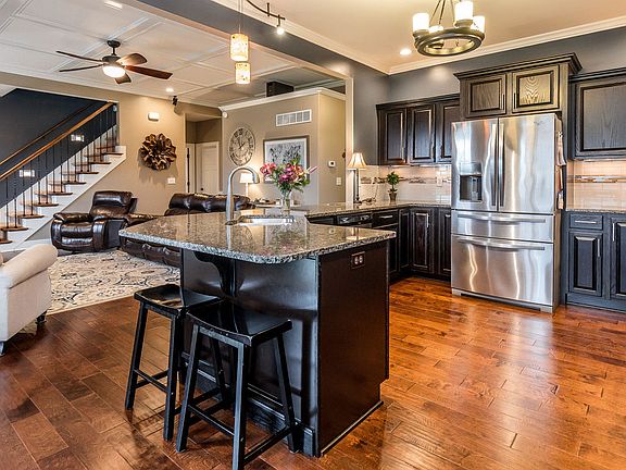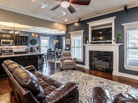 This gorgeous GEOTHERMAL 4 Bed 3 Full Bath Brick Home in Stonegate Manor is a must see. As you enter the home you are greeted by a large living room that is completely open to the massive kitchen and dining area. The living room features an electric fireplace, beautiful trim work, and Engineered Hardwood floors. The Living room leads right into the large kitchen with dark cherry cabinetry, granite countertops, breakfast area, and Engineered Hardwood floors. One side of the split plan is a master suite and Laundry room. The large master bedroom, with a vaulted ceiling, leads to a master bathroom with a large tub, separate shower and double bowl vanity. The other side features 2 spacious bedrooms and a full bathroom. A staircase leads to a 4th bedroom above the 2 car attached garage.