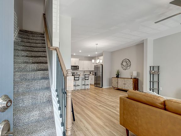 Beautifully Built Townhome with High-End Finishes! This quality construction townhome features beautiful laminate flooring throughout the main level and an open-concept layout perfect for entertaining. The stylish kitchen boasts white cabinetry, a tile backsplash, stainless steel appliances, quartz countertops, and a spacious island. Refrigerator and front-loading Bluetooth washer & dryer are included! Upstairs, you'll find all three bedrooms and a convenient laundry area. The spacious primary suite offers a walk-in closet and a stunning en-suite bath. Enjoy outdoor living on the 14x10 covered back patio, which overlooks serene common land. Bonus: heated and cooled storage space just off the patio! Located just minutes from shopping, dining, and everyday conveniences—this one checks all the boxes!