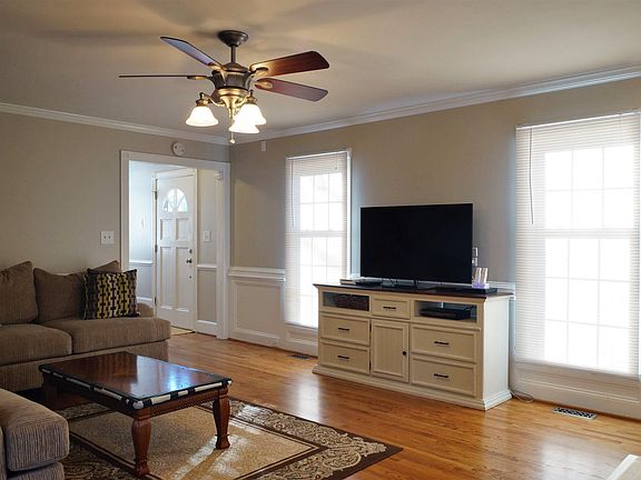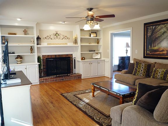- Living Room: Fireplace, Floors-Hardwood, Molding, Books, Ceiling Fan