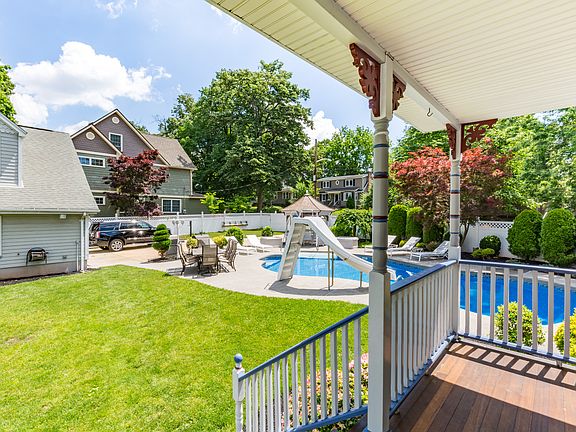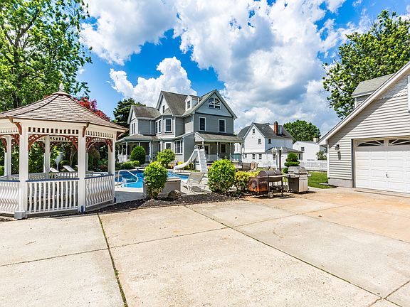 Home completely renovated, keeping the character of the original design. Everything is new except foundation and frame. Basement: One large TV/Game Room, full bathroom, one bedroom. First Floor: 9 1/2' ceiling, hardwood floors throughout, new eat in kitchen, new appliances, formal dining room, large living room, 1/2 bath. Second Floor: 9' ceilings, hardwood floors throughout, 3 bedrooms, laundry room aprox. 8'x10', open family room with gas fireplace, 1 full bath. Top Level: Large Master Suite and bath, whirlpool tub, separate shower w/steam. Exterior: Large property aprox. 13,000 sq. ft., wrap-around porch, rear porch, large custom pool with Gazebo w/ TV Garage: Large 2 story garage with heat and 1/2 bath, open finished space aprox. 850 sq. ft. Systems: 2 separate central air conditioning units, 2 hot water boilers (4 zones) central vacuum system, alarm wired, 2nd floor sound proofed.