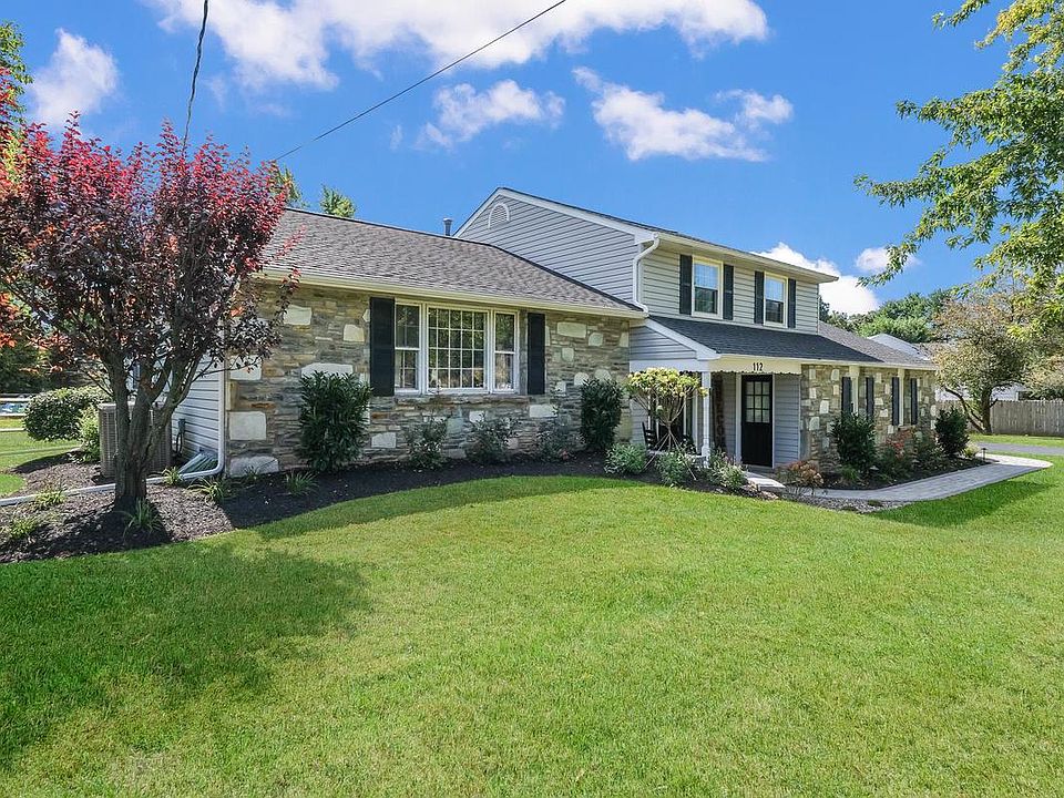 Welcome home! The first thing you will notice is the extensive hardscape and landscape with tremendous curb appeal. Enter the home on the first level to find the foyer, powder room, a private office with fireplace, a huge light filled family room overlooking the private back yard and the laundry room. The second floor features the kitchen , dining room and living room. Upstairs you will find the master bedroom with recently upgraded bathroom, 2 good sized bedrooms and a hall bath. Out back there is a large deck off the kitchen and a paver patio. There is also an unfinished basement and we can't forget the 24x28 detached garage perfect for the hobbyist! All of this in Council Rock School District.