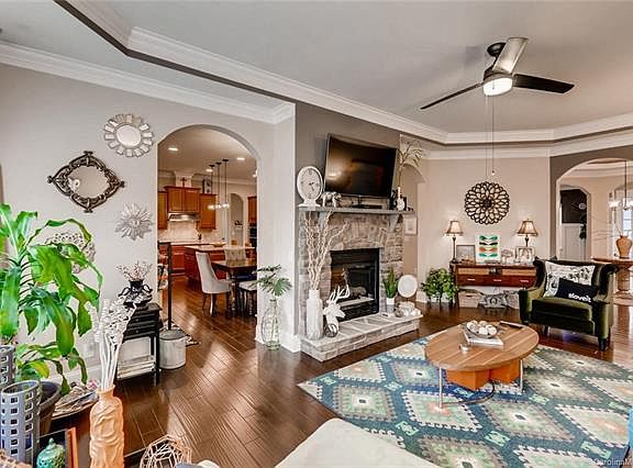 • Equipment: Disposal, Ice Maker Connection, Electric Dryer Hookup, Self Cleaning Oven, Ceiling Fan(s), Network Ready, Cooktop Gas, CO Detector, Oven