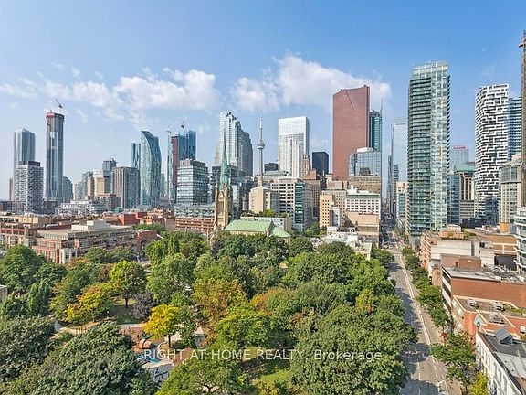 "Whoa, check out the VU!" Mesmerizing, jaw-dropping 180-degree views to the South (St. Lawrence Market & Lake Ontario), West (St. James Cathedral & Park, CN Tower & Financial District) and North (Eaton Centre). By day or night and throughout the seasons the cityscape becomes your canvas of never-ending intrigue! Development restrictions are protected by provincial and municipal heritage laws. Live and entertain in stylish elegance while enjoying numerous upgrades and unique design elements in your urban oasis. A very rare chance to purchase a 1,196sf corner suite with 9' ceilings overlooking St. James Park; it features 2 Bedrooms plus a Den, 2 renovated Bathrooms, plus 2 Private Balconies perfect for your morning coffee and sunset cocktails. Two side-by-side Parking Spaces on P1, and a large Locker on the 3rd floor. Tastefully customized with artistic flair which are detailed in the Feature Sheet available using the Virtual Tour/Multimedia link. The VU is near to everything that makes the city pulse: St. Lawrence Market, top restaurants, wine bars, theatres, Bay Street and the upcoming Ontario Line. The VU has a Walk Score of 100/100, Transit Score of 100/100 and Bike Score of 98/100. The building is quiet and well-managed with amenities that include: a huge roof top patio with lounge area and BBQs, 24-hour concierge, gym, guest suite, billiard room, visitor parking & more. Easy access to the DVP and Gardiner. A harmonious blend of modern comfort & historic charm, make this the quintessential urban home!