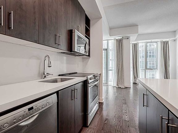 Fabulous Downtown Location. Award Winning "Vu Condo". Walk To St. Lawrence Market, Shops, Restaurants, Ttc, Financial District, The Distillery, Scotiabank Arena, Etc. Easy Access To Dvp/Gardiner & Lakeshore. Spacious 2 Plus Den Plus Office + Functional Loft-Like Suite With 10Ft Ceilings. Perfect For Entertaining Or For Family Life. 1 Parking + 1 Locker Included. 1025 Sq Ft + Balcony.