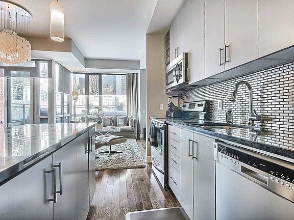 Rarely Offered One Br Unit W/ Large Terrace And Unobstructed Cityview. Spacious Kitchen Opens To Living And Dining, Easy For Entertaining. 10'Ceiling Thr Out. West Exposure W/ Flr To Ceiling Windows Offer Max Sunlight. Prime Location In The Heart Of The City. Minutes To Financial District, Distillery District, St Lawrence Market, George Brown College, Shopping, Restaurants, Highway Etc. Designer Quality Finishes Thr Out. This Home Shows Beautifully.