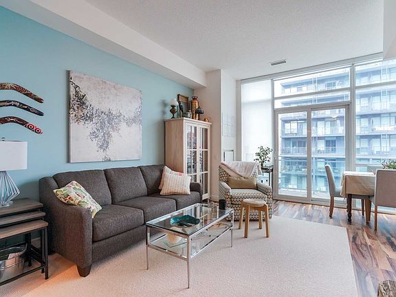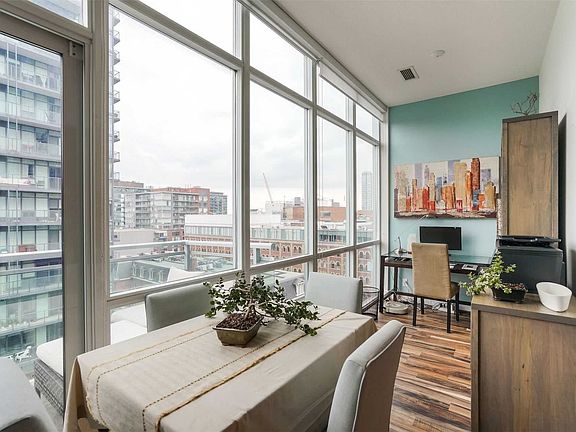 It's A Pleasure To Work From Home! Harmonious 1+1 Bedroom Floor Plan In Award Winning "The Vu". Impressive East Facing Wall Of Windows Bathes The Living Room & Den In Natural Light. Kitchen Is An Entertainer's Delight With Large Island & Granite Counters. Bathroom Divided To Serve As Both A Powder Room & A Bedroom Ensuite. Large Den Suits Work At Home Situation. New Hardwood Floors Throughout & 10 Ft Ceilings. Enjoy Warm Nights On Your Oversized Balcony!