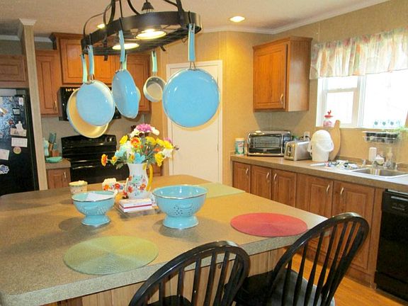 Large 3bd, 2ba manufactured home on .90 of an acre just minutes to town. You will not find a home of this size for this price anywhere. Large eat in kitchen with gorgeous island/breakfast bar, dining room and large pantry. Den area off the kitchen is so cozy with a wood burning fireplace or keep the gas log stove and use it (it looks like it's part of the fireplace but it is removable) Large windows for natural light in the afternoons. Spacious master bedroom with en suite bath, double sinks, walk in shower and a soaking tub. The master has the largest walk in closet I have ever seen in a manufactured home. Walk through the kitchen and dining through the french doors into the formal living room. This room is perfect for family time as it is huge. Down the hall to the main bath with tub/shower unit, then bedroom 2 and bedroom 3 which are very good size. Then there is yet another room it is being used for an office type space but could very easily be converted to another bedroom. This home has a ton of space!!!! There is a screened in back porch, detached single carport and a large storage shed in the back. The front yard is level, and has pretty winter views of the NC mountains.