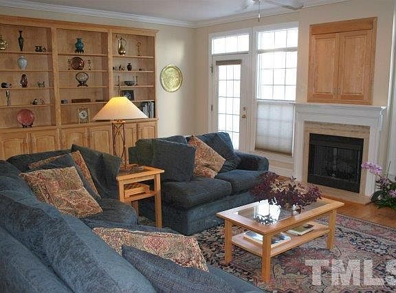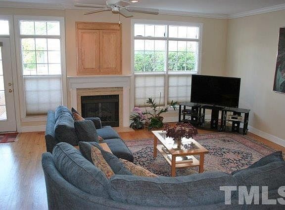 Southern Village gem.Meticulously maintained.1-owner townhome on 1 of Southern Village's prettiest streets.Light-filled & open.Gorgeous hdwd flrs & window treatments.Separate,generously sized dining rm.Kit opens to family rm w/gas FP & bltins.Private patio enjoys morning sun.Oversized 1-car garage.2nd level master BR w/cathedral ceiling,jetted tub,separate shower,dual sinks,WI closet.2 addt'l BRs,bath & laundry on 2nd.3rd level walk-up attic ready to be finished for bonus or ofc.Easy,maint-free living.