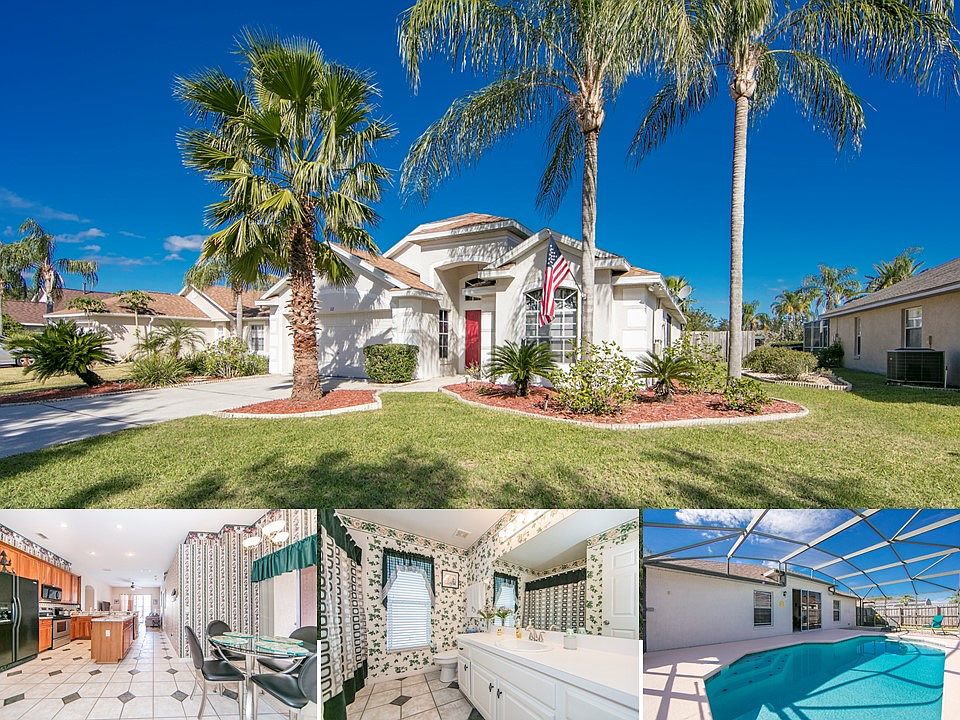 Captivating single family home in the lovely community of Wellington in Davenport, boasting 3 bedrooms and 2 full baths. The house is complemented with a well-kept front yard and mature landscaping. Walk inside and find a stylish interior matched with carpet and ceramic tile flooring. The home comes with ample sized rooms, one tiled bonus room, a lovely masters, with garden bath and a tub with separate shower stall in the master bathroom. The living room is perfect for bonding with your family or entertaining your guests. The kitchen is airy and well ventilated and features an island, breakfast nook plus a closet pantry for food storage, and solid wood cabinets. Through sliding door, it will lead you to the screen-enclosed private pool. Home is with new roof. Property is located minutes away from Disney, Universal Studio, shopping centers and restaurants.
