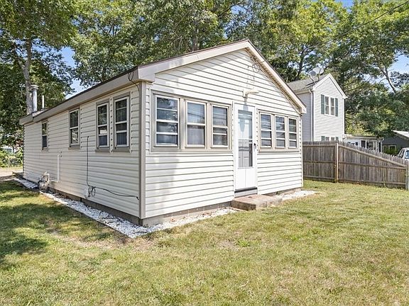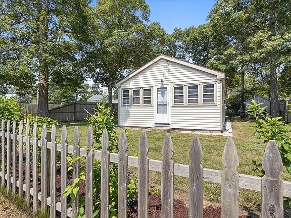 Whether you're embarking on your first home purchase or considering downsizing, this cozy bungalow presents an excellent opportunity. Step inside to discover the living room with new vinyl plank flooring and the unique wood ceiling. The galley style kitchen is equipped with granite countertops, hardwood floors and beamed ceiling. The primary bedroom offers a spacious walk-in closet with new vinyl plank floors. The secondary bedroom located off the living room has hardwood flooring. The full bathroom has been recently updated, featuring a tiled shower and floor for easy cleaning. Additional highlights include a lofted space for storage, ideal for organizing belongings, a new bulkhead into the basement, and mudroom area for coats. The fenced-in yard provides privacy and security for pets complemented by a composite deck and new shed featuring electricity, perfect for a workshop or additional storage. Close to major highways, White Island Pond and Onset Beach!