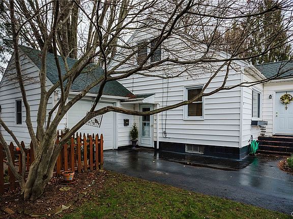 Move in condition Cape centrally located near I81 and the Thruway. This property has been in the same family for almost 70 years. Extremely solid house with steel I beams for structural support. Many updates include laminate flooring, new electric entry service and breaker panel. The finished basement workout room and workshop area maximize all the space available. Hardwoods were recently refinished. Plenty of storage and cupboard space including a basement pantry/former fruit cellar. Outside enjoy the beautiful yard with carefully tended perennial flower gardens and berry patch. Partially fenced yard with a deck is a great place to relax under the tree. Laundry chute is one of the owners favorite features. Delayed negotiations until 5PM April 10, 2024. The mirrors in workout room and outdoor speakers do not convey. All offers due by 9AM April 11, 2024.