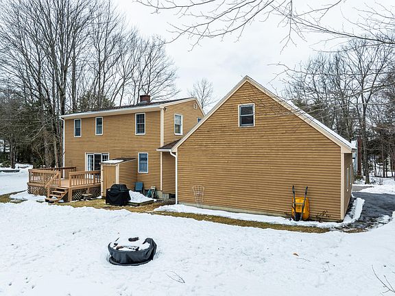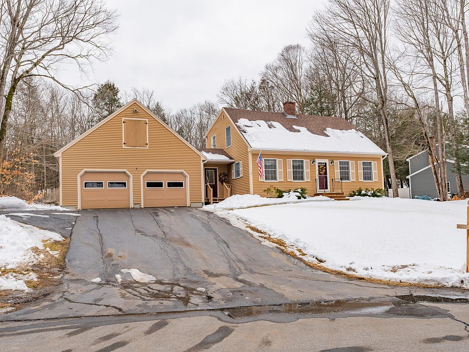Proudly postured on a bright sunny knoll, this story book Cape offers features and amenities for one and all. The enclosed and finished breezeway serves as the essential mud room, and leads to an open Dining area and Family room with hard wood and triple atrium door for access to the private rear sun deck. The back of the home faces south and allows for abundant natural sun light. The eat-in kitchen is well planned with ample cabinetry, solid surface counter top & nicely updated appliances. A cozy Living Room with hard wood and a full bath complete the first floor. Upstairs you'll find three comfortable bedrooms and another full bath. The lower level is mostly finished and easily able to serve a variety of future uses. With a separate zone of HWBB heat this versatile space is ideally suited to accommodate your Rec room, Office and Studio space needs. The attached two car garage has storage space above and the driveway was recently sealed. Set privately at the end of a dead end street in a quiet neighborhood that allows easy access to walking/hiking trails. This location is ideal for commuters, close to Bowdoin College & Brunswick schools, and just minutes from all that down town Brunswick has to offer.