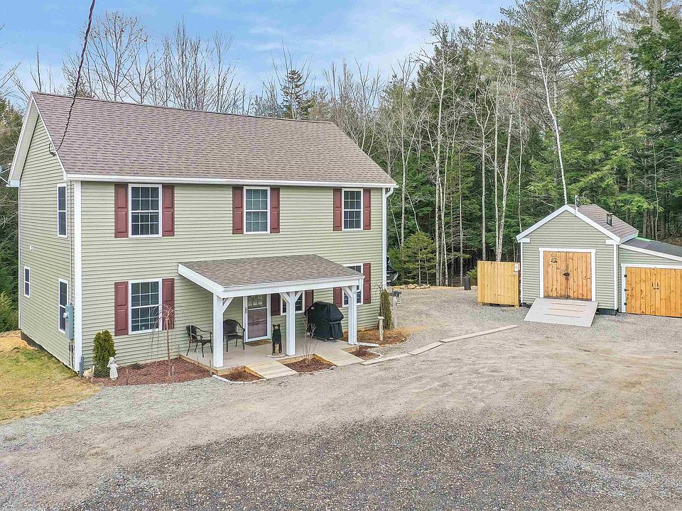 **OPEN HOUSE Cancelled for Sunday 02/04/2024, property went under contract.** Welcome to the heart of the Lakes Region in beautiful Belmont NH! With access to several lakes at your fingertips with Sargent Lake, Silver Lake and Lake Winnisquam, as well as access right out your back door to trails for a variety of activities(walking, snowmobiling trails to be specific), there's so much to enjoy! EZ living on a street of newer homes yet all the privacy you'd ever want, this colonial style home offers an adirondack interior flare with lots of wood accents, 2 large bedrooms, 2 Baths, Open concept living / kitchen with separate dining room space on the main level of the home to include an upgraded kitchen that features butcher block top island while quartz compliments the remainder of the countertops. Venture up the open staircase to a spacious landing with entries to both large bedrooms and convenient 2nd floor laundry located in the 2nd floor bath! Ample storage in the workshop / oversized detached shed as home is built on a slab foundation, attached carport (NOT a true enclosed garage), covered entry to the home and tons of parking for all the toys! Don't miss out on this opportunity in this new up-and-coming subdivision only minutes to all the lakes region local attractions!