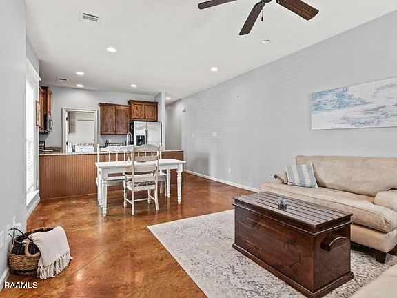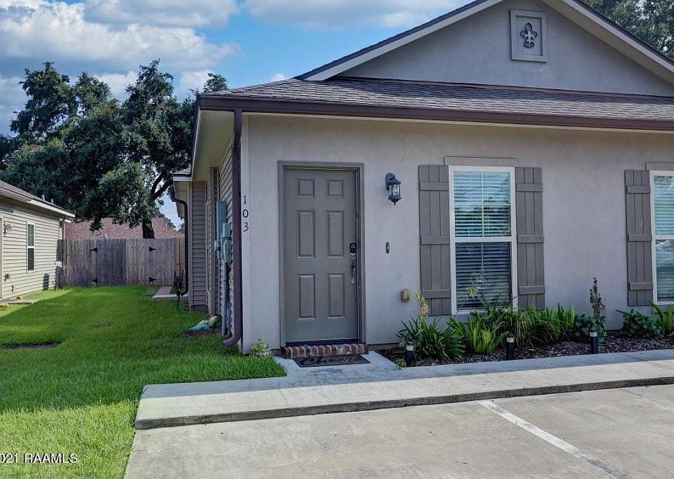 Great location and truly turn-key! With easy access to Johnston, Congress, and Camelia, this home is in the middle of everything Lafayette has to offer. The open floorplan has lots of natural light, a large peninsula, and feels much more spacious than the square footage suggests. The kitchen features lots of granite countertop space, a great corner cabinet with lazy susan, and stainless-steel appliances. A half bath is easily accessible from the living area and both bedrooms have their own en suite baths! This super clean home has scored concrete floors and neutral colors making it ready to move in and call your own. It would also make a great investment for a solid rental property. Outdoors there are partial gutters, an extended patio and a fully fenced yard.Note that the complex is gated and there is no ability to just drive by. Please call listing agent to schedule a showing before this one is gone!