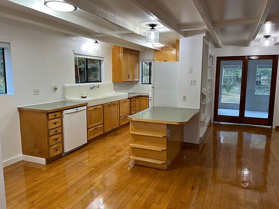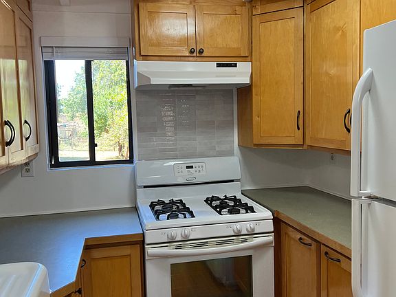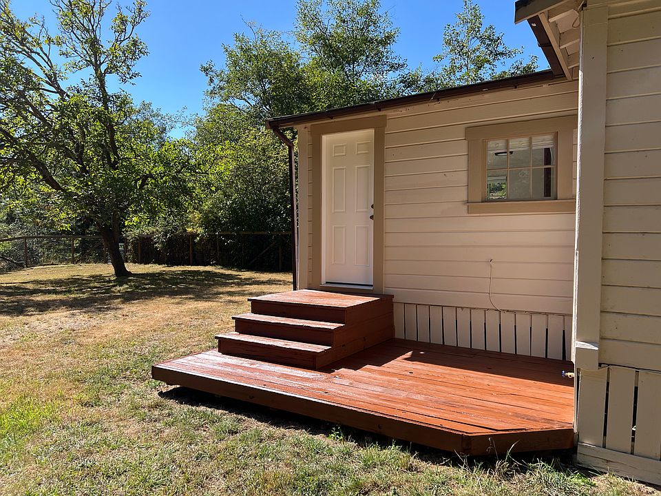 Super clean 2 bedroom 1 bath house on private fenced 3/4 acre lot with over 300 sq. ft. of covered decks overlooking Palmer Creek. Well designed floor plan includes kitchen with breakfast bar, dining room, and sunroom. Wood stove and Rinnai natural gas in main house. On Demand water heater installed July 2025. Additional bedroom and/or office potential between house and recently renovated, detached 600 sq. ft. outbuilding which has a studio, loft, and workshop with pellet stove. Other additional outbuildings include garden shed and wood shed. Multiple off street parking spaces. Gated entry. Numerous recent upgrades, and fresh paint throughout main house and outbuilding. Mature fruit trees. This property has great home business potential. Nice neighborhood. Country living on your own private acre, yet 5 min drive to main street Fortuna. One year lease required. No smoking/pets inside house. Quarterly yard maintenance included.