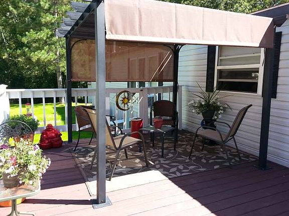 Well cared for three bedroom and two bath ranch style home in Harmony Hill Park. There is a large deck with a pergola on part, a storage shed and paved driveway. The home is open concept with a large living room, kitchen and dining area. The bedrooms are split with two and a bath on one end and the master bedroom and bath on the other. Located just a mile or two outside of Rhinelander. This is a nice home and is inexpensive to live in with park fee of $240 and includes water, sewer, garbage pickup and lawn care and seller is currently paying WPS budget plan of $120 per month. Call today with your informed showing.