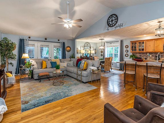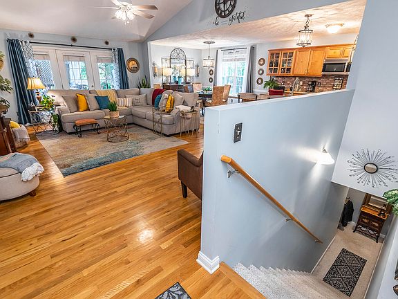 Enjoy the best of both worlds by combining a neighborhood and rural feel. This sprawling ranch has three bedroom 3 baths and sits on a finished walk out basement. The bright and inviting living room has soaring vaulted ceilings and the kitchen offers a dinning area and a convenient breakfast bar. The basement has a large rec room with pool table that conveys, full bath and an additional area perfect for a gym or home office. The large fenced yard features a shed for additional storage, a covered patio, covered deck and mature landscaping and trees. HVAC and Roof are just 4 years old.
