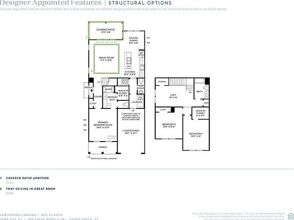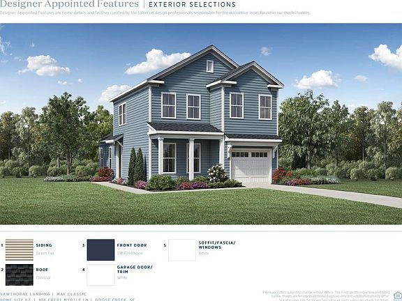Situated in desirable Goose Creek, Hawthorne Landing offers an idyllic location that's brimming with small-town character and puts luxury within reach. The Mae's distinctive design features a first-floor primary bedroom suite and private side entry. Inside, the main foyer flows right into the spacious great room and casual dining area. A large center island with breakfast bar highlight the well-appointed kitchen. The beautiful primary bedroom suite is complete with a spacious walk-in closet and gorgeous primary bath with large luxe shower and private water closet. Upstairs, central to a sizable loft, secondary bedrooms feature ample closets and shared hall bath. Home is under construction. Each home is connected by storage shed.