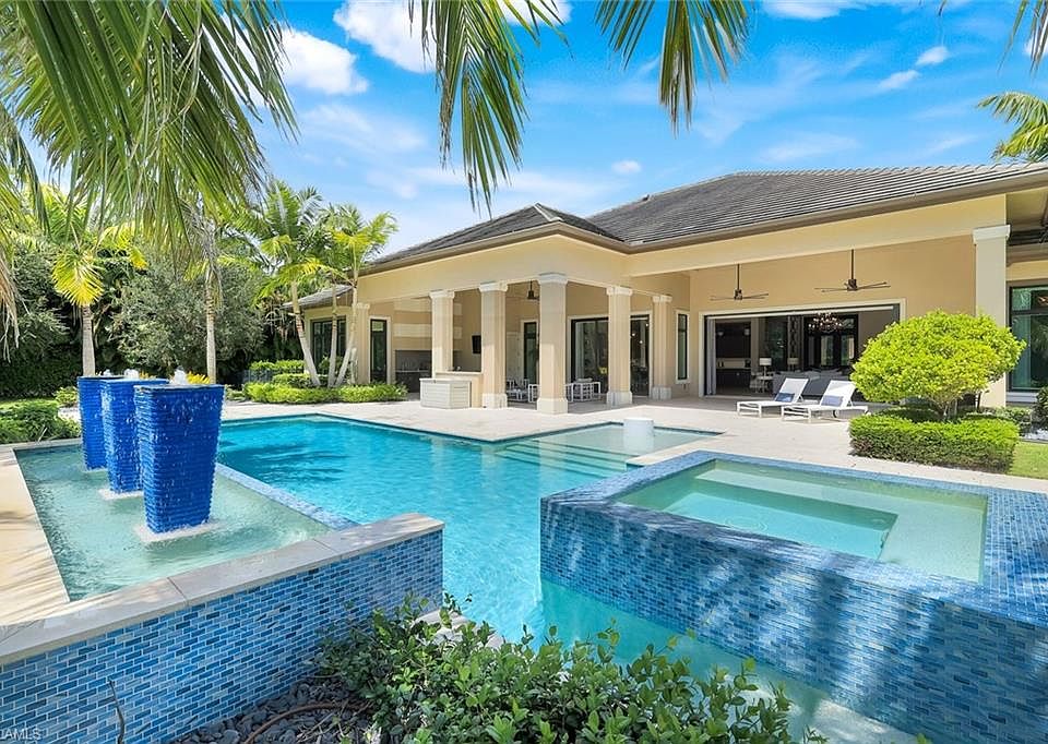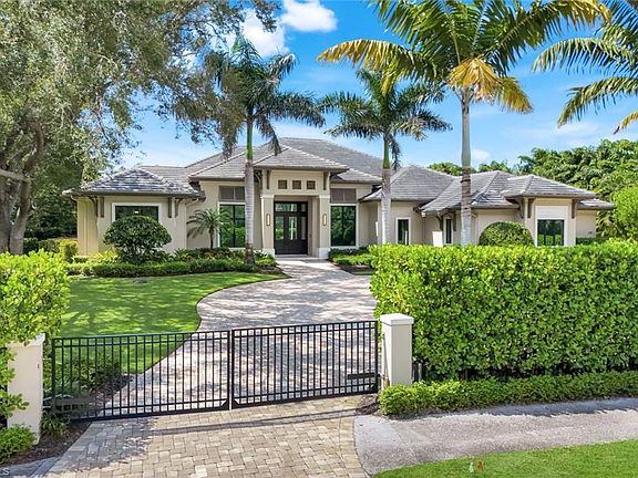 Welcome to 112 Hickory Road, a stunning McGarvey Custom Homes residence designed by Clive Daniel for the most discerning buyer. Located in Pine Ridge Estates, this luxury home offers nearly 4,700 square feet of sophisticated living space on a one-acre lot secured by a private gated entrance. From the moment you step inside, you’ll experience the WOW factor from the craftsmanship, attention to detail, timeless design, and expansive view of the outdoor living space. The open-concept great room with fireplace flows seamlessly into a chef’s kitchen with top-of-the-line Wolf appliances, beautiful cabinetry, large island, wine bar, and breakfast nook leading out to the lanai. You’ll find four spacious bedrooms, each with its own ensuite bath and walk-in closet, plus a large den with french doors and elegant finishes throughout. The primary suite is truly a retreat, complete with a cozy sitting area with bay windows and a spa-inspired bath. One of the many highlights of this home is the indoor-outdoor living experience. The expansive lanai of nearly 700sf features a large covered sitting area with a fireplace, outdoor kitchen, retractable screens, and a resort-style heated saltwater pool and spa surrounded by lush landscaping—offering both privacy and the perfect backdrop for entertaining or just unwinding. The Crestron Home Automation system allows you to control the entire home from anywhere and impact glass throughout give you peace of mind year-round. The Pine Ridge Estates neighborhood is popular in Naples not only for its ideal location with close proximity to the beach, fine dining, and shopping, but also for its privacy and rural aesthetic. This home is a short stroll to the upscale and vibrant Mercato, a go-to destination. Come experience the best of what Naples has to offer in this stunning home!