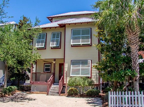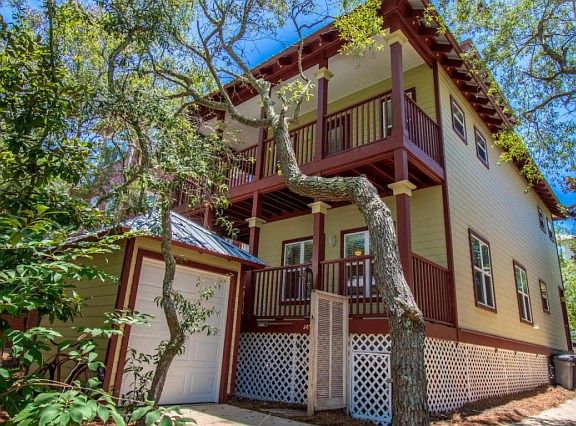 Largest floor plan available in Old Florida Village, one of 30A's most popular vacation rental/second home communities. Fly Me to the Moon is a 4 bedroom, 3 full bath home with 3rd floor loft currently being used as a fifth bedroom. Exterior features include: hardy plank siding, galvalume metal roof, brick paver driveway, irrigation system, privacy fence, nice covered decks on two levels, and golf cart/storage garage. Two community pools, lush and well kept landscaping, white picket fences, overflow parking in manicured open areas all combine to offer a wonderful family friendly neighborhood. Quality construction, great location, and proven rental history! Perfect for a full time, investment, or second home. Make Old Florida Village your home away from home.