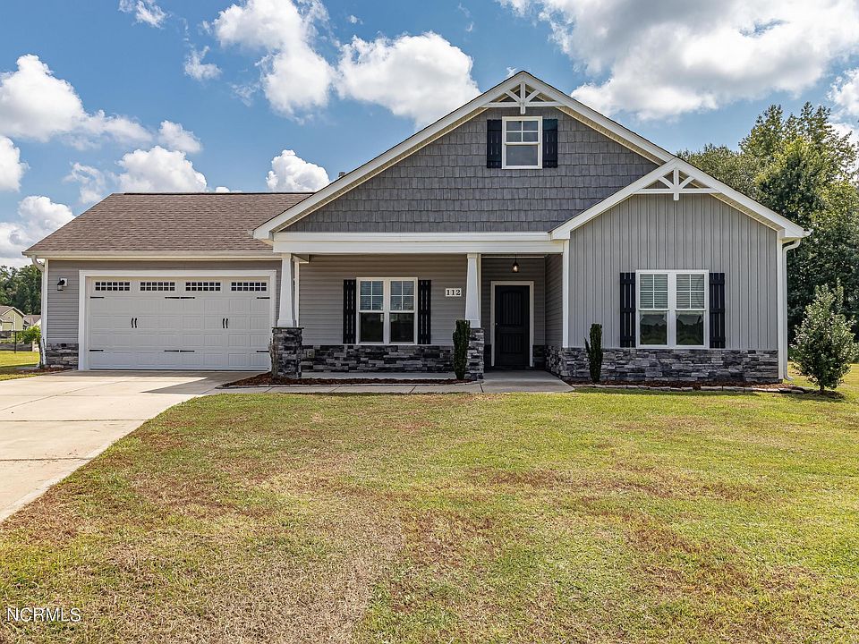 Welcome to Ingram Fields and 112 Hidden Maple Court! This home sits on .38 in a quiet cul de sac with a spacious private back yard. Home has 3 beds and 2 full baths. Primary has a spacious walk in closet and trey ceiling with ceiling fan. On Suite has double vanity and walk in shower as well as large soaking tub and separate water closet. Welcoming foyer has a double closet for coats and storage. Large Pantry in kitchen which is a wonderful feature. Open floorplan allows for family time together while watching TV, eating or preparing meals. Split floor plan allows for privacy when desired. This home comes with the convenience of stainless steel refrigerator, washer and dryer and even a large flat screen TV already mounted over the gas log fireplace. Two car garage and both front and back porches are covered. Hurry to get your tour in!