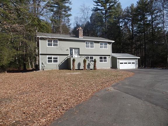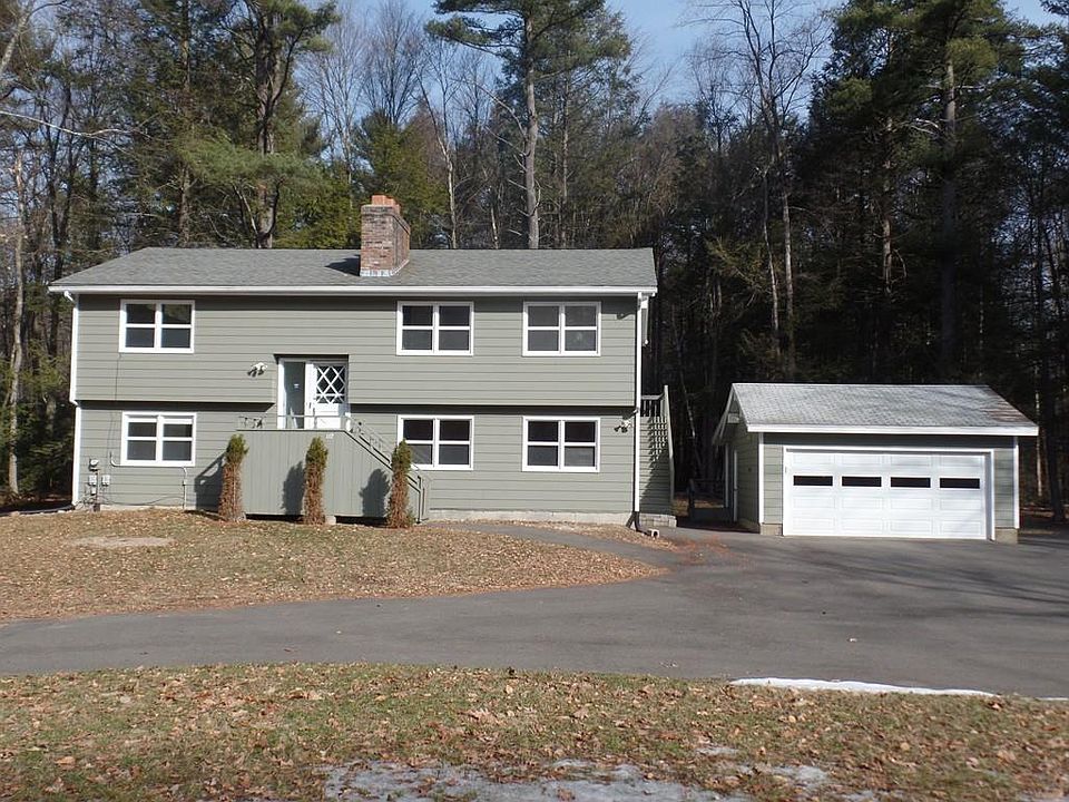 LOCATION, location, location! Come view this expansive, light and bright 5 BR 2 full bath (plumbed for another half bath) contemporary split level! 2nd floor offers a well equipped kitchen that opens into the dining area and then into the large living area anchored by a stunning brick fireplace. Closet space galore, and an absolutely massive master bedroom with newly remodeled full bath! Head downstairs for another large living space with brick fireplace, 4 good size bedrooms and large newly remodeled full bathroom with laundry! Detached 2 car garage with extra storage room in back for those landscaping supplies. NEW SEPTIC 7/2015!!! Wonderful flat lot with ample parking in a well established neighborhood - would make a wonderful investment property - only 4 miles to UMASS!