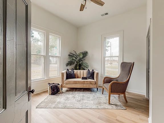 This single-story home features central electric heating and central A/C. The house features vaulted ceilings and a dining room, creating a spacious and functional layout. The kitchen is equipped with an electric stove and oven, refrigerator, and a portable microwave. The laundry room comes with washer/dryer hookups.