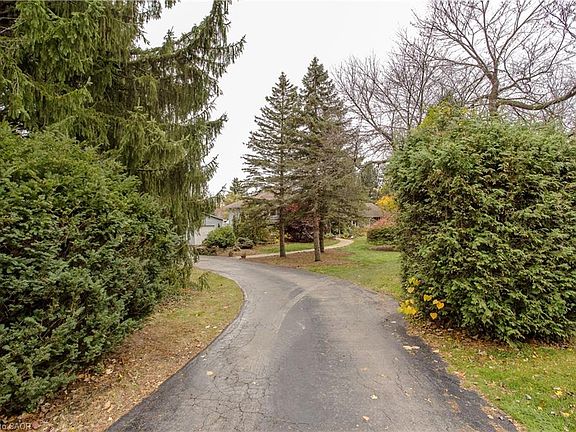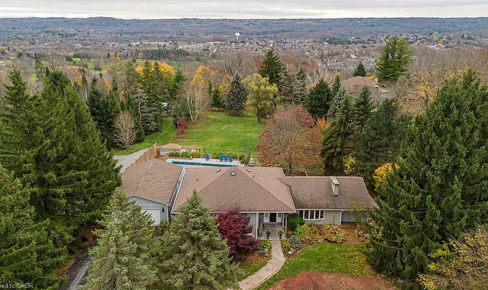 Welcome to this charming 4-level side split, originally crafted for the Grafton family in 1954. Situated on a serene 1.09-acre lot, this property boasts privacy and beauty with mature trees, a long driveway, and ample front yard space accommodating parking for 10+ vehicles, including a 20x40 garage with a lift. Perfectly located, it’s just 3 minutes from Dundas Valley Golf & Curling Club, 5 minutes to quaint downtown Dundas, and close to scenic trails, waterfalls, and major routes. Inside, find a bright, welcoming ambiance with hardwood throughout. The eat-in kitchen leads to a dining room with elegant coffered ceilings. The Great Room on the main level is a showstopper, featuring floor-to-ceiling windows, a wood burning fireplace, one of 5 fireplaces in the home, and an adjoining family room —ideal for gatherings. Upstairs, enjoy a private primary sanctuary with views of the escarpment with a 4-piece ensuite, alongside an additional 3-piece bath with a glass shower. The lower level offers a partially finished walkup with a billiard room, which could be used as a fourth bedroom, patio access, storage, utility room, and a rough-in for a washroom. Outdoors, a private backyard oasis awaits, complete with a hot tub, a recently painted (2024) in-ground pool, and expansive views of the escarpment and golf course. New furnace installed in 2022. Don't miss this exceptional Greensville home!