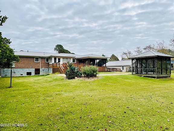 Beautiful Raised ranch situated in a quiet neighborhood. This amazing home has been totally updated & lifted after Hurricane Matthew in 2016. 4 BD, 2.5 BA plus formal LR & DR, large utility/laundry room, eat-in kitchen & sunroom make for comfortable living & privacy. Hardwood & plantation shutters thruout. Kitchen features granite surfaces and newer appliances. Huge (20'x36') storage building w/garage door would be a great workshop or indoor kennel space to go with a fenced-in backyard. A large deck & screened gazebo are the highlight of the backyard with a handicap entrance thru sunroom with Ramp and railings. HVAC installed November, 2017. Shallow private well & in-ground pool (filled in) could be brought back to use with a little bit of love. Home on city water/sewer. Metal roof in 2003. This home is situated close to the river and not far from OBX for those water and nature lovers!