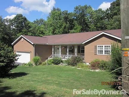 Three bedroom, 2 bath, Ranch style home. Two car garage attached to house and 2 car garage below house. New 3 1/2 ton carrier heat pump system, large kitchen and dining room combination with french doors going out to back yard. Kitchen appliances included. Large living room. Easy to heat during winter months. 11 acres of woodland behind house for privacy, 1 1/2 miles off interstate 64. Ten minutes from Beckley, 1 mile from Grandview golf course on rt 307 (Scott Ridge Rd.)House was built in 1996Additional property info: http://www.forsalebyowner.com/listing/N5JV2?provider_id=28079