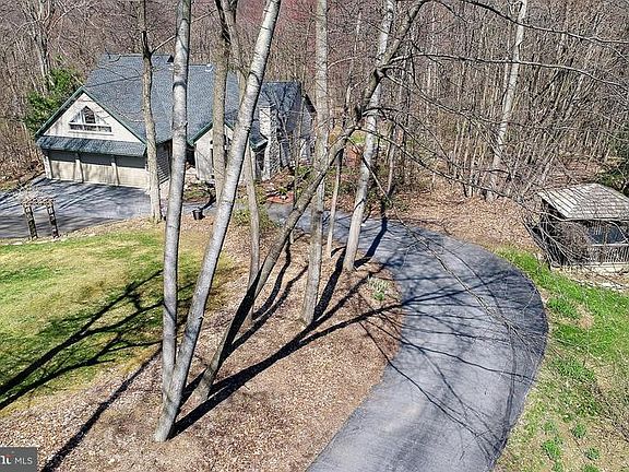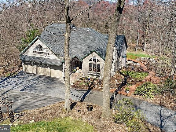 The search for the concealed location with impressively designed architecture may end here on over 2 acres!No quality stone left unturned: expansive and carefully maintained hardwoods, granite kitchen and formal dining room with exposed wood beams, first floor master bedroom and bath, 2nd floors bedrooms all uniquely designed with custom window fittings in front room, multi level back deck with mood setting tiered fish pond, serene setting with regular wildlife visitors... finally, full basement with private bedroom, wet bar and daylight walk-out entrance to screened in porch and hot tub! Truly have it all!