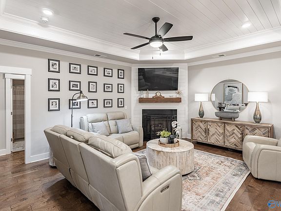 - Features: Ceiling Fan(s), Crown Molding, Fireplace, Recessed Lighting, Tray Ceiling(s), Wood Floor