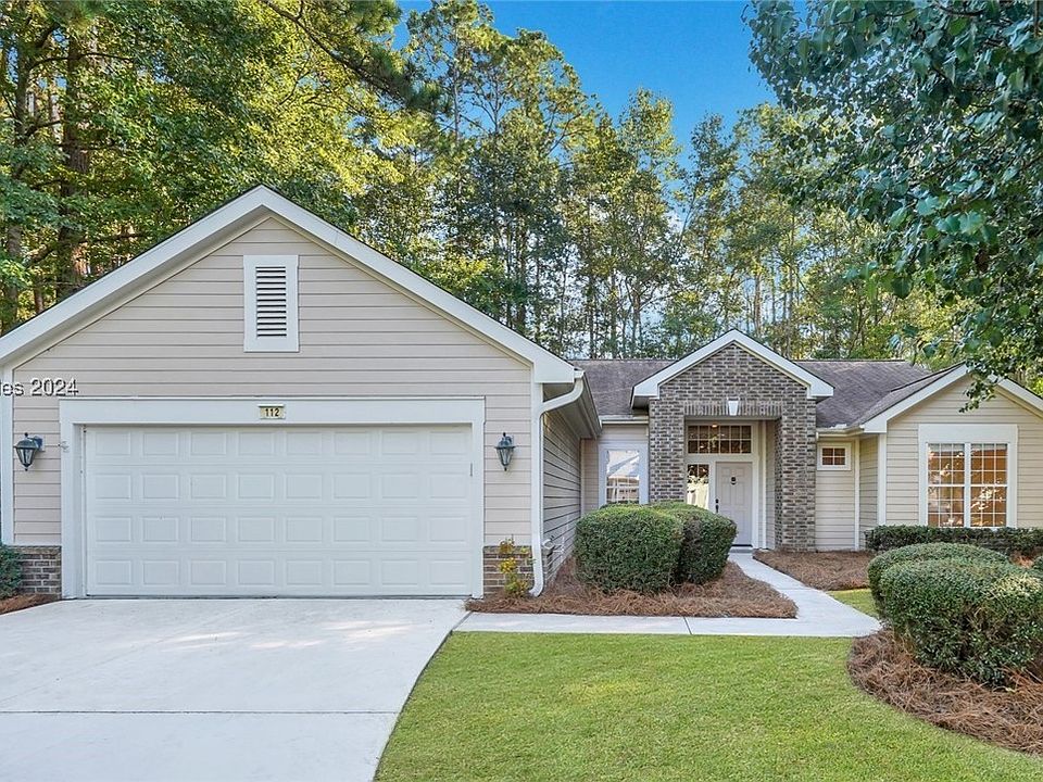 Private location in Sun City! Popular Charlotte floor plan offers one-level of spacious living. This 2 bedroom/2 bath home offers two living spaces, an office/flex room off of the kitchen, and a screened porch. Hardwood floors are throughout the living spaces, with new carpet in both bedrooms. The kitchen has white wood cabinets, granite countertops and stainless appliances. Freshly painted this home is move-in ready. You will love the private cul-de-sac and 2 car garage. Sun City is a 55+ gated amenity-rich community with pools, fitness centers, a community dog park, restaurants, golf, tennis, pickleball, and many clubs to join.
